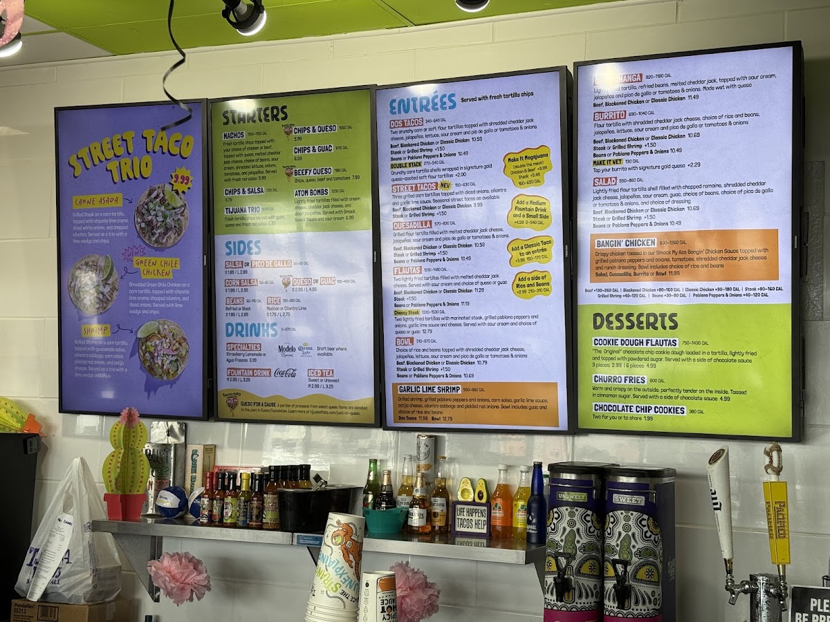 The In Yo Face Flaves section takes it up a notch with bold, flavorful dishes. The Bangin' Chicken Burrito and Bangin' Chicken Quesadilla are standout options, packed with savory ingredients that will leave you craving more. For seafood lovers, the Garlic Lime Shrimp Tacos and Garlic Lime Shrimp Bowl provide a zesty and fresh taste. If you’re looking for something indulgent, the Cheesy Steak Flautas bring a perfect combination of crispy and cheesy, adding excitement to your dining experience.